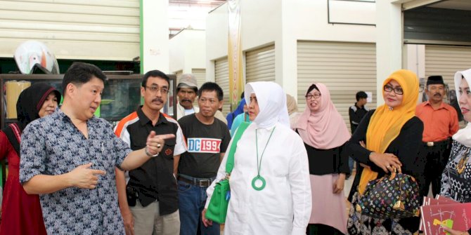 MAKASSARMETRO– Ketua Tim Pengerak PKK Kota Makassar Ibu Hj Indira Yusuf ismail di dampingi Camat Biringkanaya dan Ketua Tim Pengerak pkk Biringkanaya Berkunjung di pasar grosir daya (pagodam ), Senin (02/01/17).