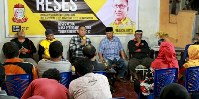 MAKASSARMETRO– Puluhan warga Kelurahan Maricaya, Kecamatan Makassar menghadiri Reses Kedua Masa Sidang Kedua Tahun 2016/2017 yang digagas Oleh Ketua DPRD Kota Makassar, Farouk M Betta dari Dapil I bersama Tokoh Masyarakat setempat di salah satu rumah warga di Jalan Harimau, Kamis, (02/02/2017).