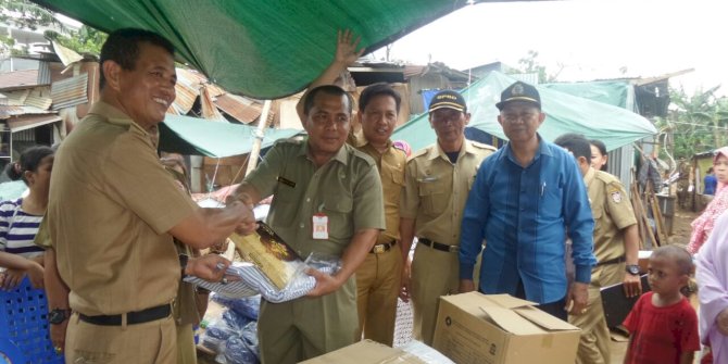 Bantuan diserahkan langsung Kepala Pelaksana BPBD, Muhammad Rusly didampingi Sekretaris BPBD, Khaeruddin dan Kabid Kedaruratan & Logistik BPBD, Maharuddin.