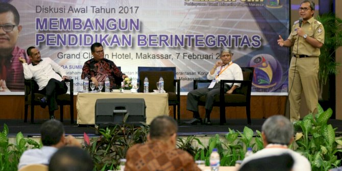 MAKASSARMETRO– Wali Kota Makassar Mohammad Ramdhan ‘Danny’ Pomanto berbicara membangun pendidikan berintegritas pada Diskusi Awal Tahun 2017 di Sandeq Ballroom, Grand Clarion Hotel and Convention, Selasa, 7 Februari 2017.