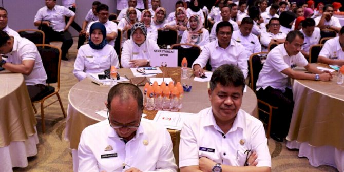 MAKASSARMETRO– Sekretaris DPRD Makassar, Adwi Awan Umar bersama seluruh pejabat struktural DPRD Makassar kompak mengikuti Rapat Koordinasi Khusus (RAKORSUS) tahun 2017 yang bertemakan “ Sombere & Smart Bureaucracy “, di Hotel Four Point by Sheraton Maakassar, Rabu (8/01/2017).