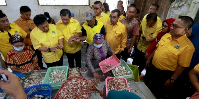 MAKASSARMETRO– Fraksi Golkar DPRD kota Makassar yang dikomandoi oleh Ketua DPRD Kota Makassar, Farouk M Betta mendampingi Ketua Umum Partai Golkar, Setya Novanto dan Ketua DPD Golkar Sulawesi – Selatan, Nurdin Halid dalam rangka kunjungan ke kelompok Tani dan Nelayan Cahaya Lantebung yang mengelolah Rajungan dan mengelola hutan mangrove, di Kelurahan Bira Kecamatan Tamalanrea kota Makassar, Jumat (10/02/2017)