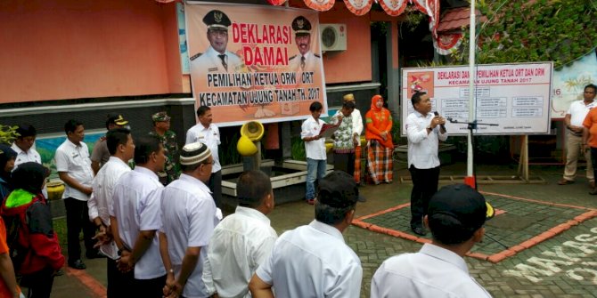 MAKASSARMETRO– Kecamatan Ujung Tanah menggelar deklarasi damai pemilihan Calon Ketua Rukun Tetangga (RT) dan Rukun Warga (RW), di Halaman Kantor Kecamatan Ujung Tanah, rabu (22/02/2017).
