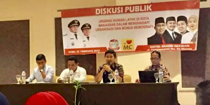 Diskusi publik tersebut mengangkat tema tentang urgensi hunian layak di Kota Makassar dalam menghadapi urbanisasi dan Bonus Demografi.