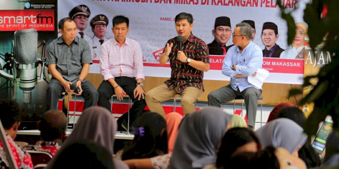 Acara kemitraan yang disiarkan secara live oleh Fajar Tv dan radio Smart FM ini juga menghadirkan Wakasat Narkoba Polrestabes Makassar, Kompol. Muh.Fajri, Dirut Yayasan Kelompok Peduli Penyalahgunaan Narkoba (YKP2N), Andi Sulolipu sebagai narasumber dan dimoederatori oleh Yusran Dg.Kampo.