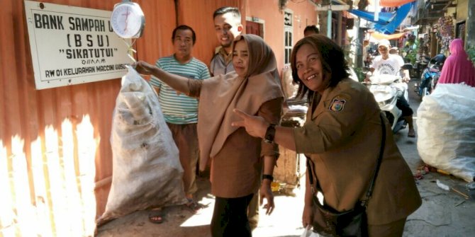 MAKASSARMETRO– Bank Sampah Unit (BSU) Sikatutui RW 1 Kelurahan Maccini Gusung, Kecamatan Makassar kembali melakukan penimbangan sampah rutin, Selasa (1/8/2017). Selain mendukung program Makassar Tidak Rantasa, juga mampu menambah pendapatan warga secara ekonomi.