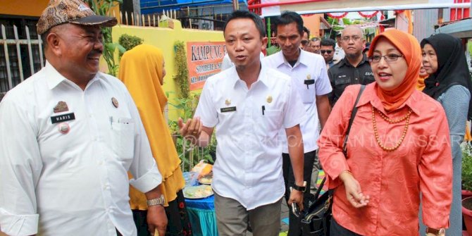 MAKASSARMETRO- Sekretaris Camat Makassar, Alamsyah bersama Lurah Barabaraya Timur Muh.Ridwan mendampingi Ketua Tim Pokja Badan Usaha Lorong (BULo), Sakka Pati dan Tim Penilai Kampung Fajar 2017 di Jl.Muh.Yamin Lr.17 Kelurahan Barabaraya Timur, Rabu (23/8/2017).