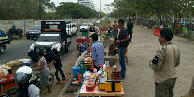 MAKASSARMETRO– Pemerintah Kecamatan Ujung Pandang melakukan peneguran dan pengawasan terhadap pedagang kaki lima (PK5) di sekitar anjungan Pantai Losari, Kecamatan Ujung Pandang. Kamis (21/9/2017).
