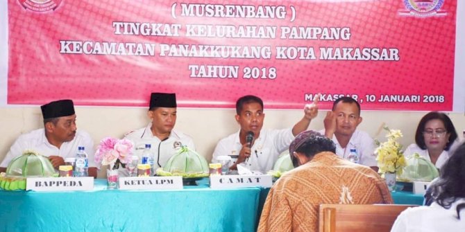 MAKASSARMETRO– Camat Panakkukang Muh. Thahir Rasyid membuka secara resmi acara Musrembang (Musyawarah Rencana Pembangunan) tingkat Kelurahan Pampang di Kantor Kelurahan Pampang di Jalan Pampang II, Rabu (10/01/18).