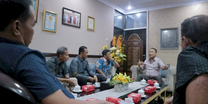 MAKASSARMETRO– Ketua DPRD Kota makassar, Farouk M Betta yang didampingi Sekretaris DPRD Kota Makassar, Adwi A. Umar menerima kunjungan pimpinan serta Anggota DPRD Kabupaten Sidrap, Selasa, 23/01/18. Di ruang Ketua DPRD Makassar.