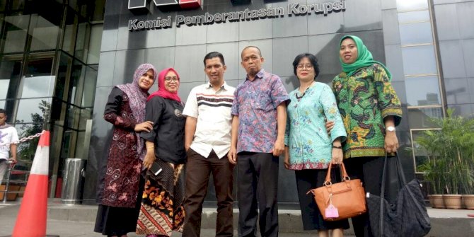 Pejabat struktural yang dipimpin Kasubag Perbendaharaan Aisah Muhtasar, Kasubag Protokol Puspawati Hera, Kasubag Tata Usaha Marlina Tawang, Kasubag Humas Andi Taufiq Nadsir, dan Andi Zafrullah Mangkona (Persidangan) serta Amel Sarmila staf protokol menemui Bagian Pelaporan LHKPN KPK Ricky Sulaiman, di Gedung KPK, Kamis (25/1/18).