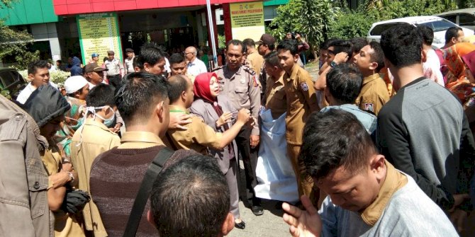 Direktur RSUD Daya Makassar, dr. Ardin Sani, M.Kes, menerima langsung aspirasi para pengunjuk rasa dengan ikut berpanas-panasan bersama pegawainya itu.