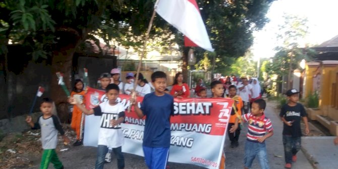 MAKASSARMETRO– Lurah Karampuang, Kecamatan Panakkukang, Andi Supriadi mengadakan jalan sehat merah putih untuk peringati HUT RI ke 73 tahun, tepatnya di Jalan Saripah Raya, Sabtu (18/8) pagi.
