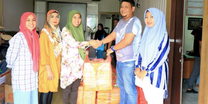 Bantuan diserahkan oileh Kasubag Tata Usaha Sekretariat DPRD Marlina Tawang Bersama Kasubag Perbendaharaan Aisah Muchtasar di Kantor Kecamatan Manggala, Jumat (25/1). Bantuan diterima Sekretaris Kecamatan Emil Rudiyanto Tadjuddin.