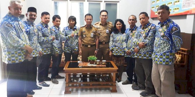 MAKASSARMETRO– Camat Makassar, Alamsyah Sahabuddin didampingi Sekcam menyerah kan seragam kepada Kader Pemberdayaan Masyarakat se-Kecamatan Makassar, di Ruang Kerjanya, Selasa (09/04/19).