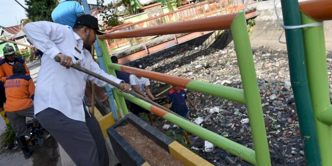 Seperti yang terlihat dalam foto, Camat Eang sapaan akrabnya juga ikut serta dalam pembersihan kanal tersebut.