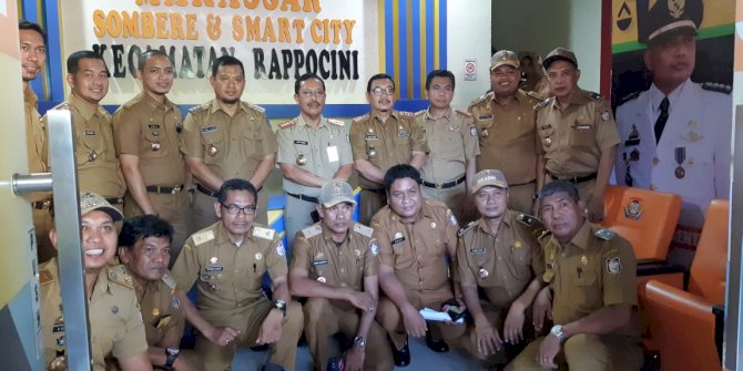 Didampingi Sekcam Rappocini, M. Iqbal S. Suhaeb bersama rombongan Pejabat Pemerintah Kota Makassar melihat inovasi-inovasi yang ada di Kecamatan Rappocini, terutama Mini War Room.