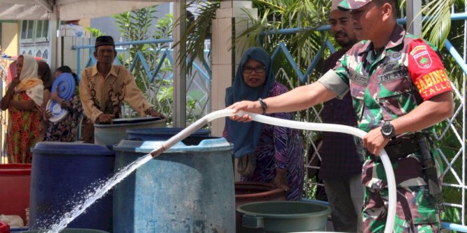MAKASSARMETRO – Kegiatan Sosial Pemerintah Kecamatan Tallo bersama Koramil 1408-02/Tallo di Kelurahan Tallo salurkan bantuan air bersih di Jalan Sultan Abdullah II RT02/RW04, Kelurahan Tallo, Kecamatan Tallo, Jumat (11/10/2019).