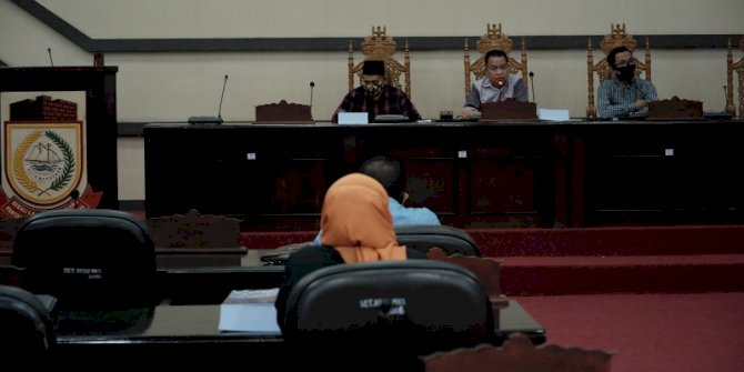 Rapat intern Anggota Pansus DPRD Kota Makassar dipimpin langsung Ketua Pansus Sangkala Saddiko didampingi Wakil Ketua Pansus Syamsuddin Raga besama Sekretaris Pansus Ray Suryadi Arsyad. Dengan tetap menerapkan social distancing, anggota Pansus nampak duduk berjarak sesuai dengan aturan yang telah ditentukan.