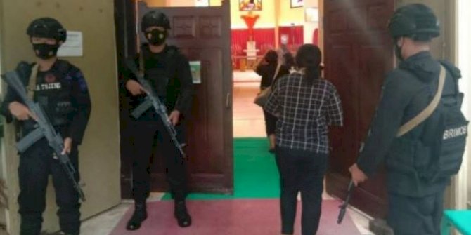 Gereja terus dilakukan pengamanan pasca bom bunuh diri terjadi pada Ahad (28/3/2021) lalu. Ada 171 gereja di Makassar yang dijaga oleh aparat kepolisian dan TNI yang bersenjata lengkap. Khusus di Gereja Katedral, ada sekitar 100 personel.