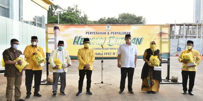 Hewan kurban sumbangsi dari DPD I serta kader Golkar juga anggota fraksi DPRD Sulsel. Dibagikan kepala masyarakat umum di kota Makassar.