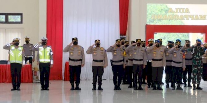 MAKASSARMETRO, MAKASSAR – Kapolda Sulsel, Irjen Pol. Merdisyam, memimpin apel gelar pasukan Operasi Patuh 2021 di Aula Gedung Serbaguna Mapolda Sulsel, Senin (20/9/2021).