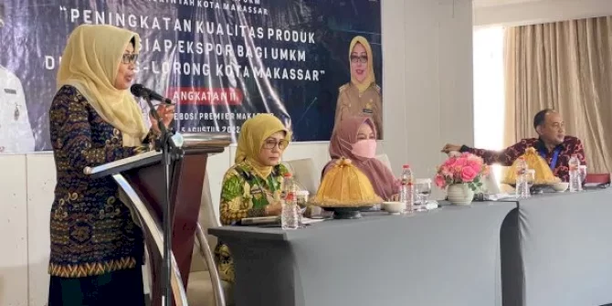 Kepala Diskop dan UKM Makassar, Sri Sulsilawati saat membuka pelatihan bagi UMKM lorong-lorong Kota Makassar. Bertempat di Hotel Karebosi Premier, Jalan Jenderal M. Jusuf, Kamis (04/08/2022)/Int MAKASSARMETRO, MAKASSAR – Dinas Koperasi (Diskop) dan UKM Kota Makassar ingin produk usaha mikro, kecil dan menengah binaannya yang ada lorong-lorong di Makassar memiliki daya saing yang mumpuni. Seiring dengan itu pun juga siap melakukan ekspor.