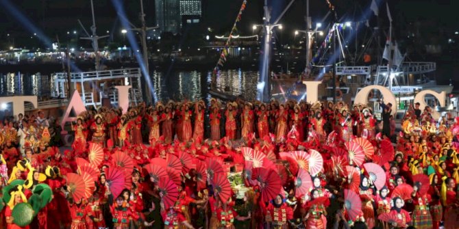 Kemeriahan Makassar International Eight Festival and Forum 2022 atau Makassar F8 di anjungan Pantai Losari, Rabu malam (7/9/2022). MAKASSARMETRO, MAKASSAR – Gelaran Makassar International Eight Festival and Forum 2022 atau F8 telah selesai dan berlangsung sukses.