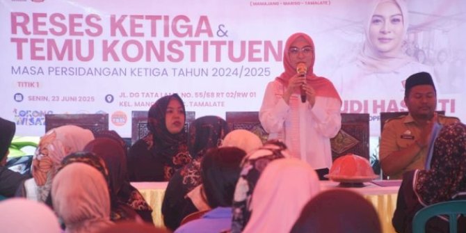 MAKASSARMETRO, MAKASSAR – Anggota DPRD Kota Makassar dari Fraksi Partai Gerindra, Budi Hastuti menggelar reses dan temu konstituen masa persidangan Ketiga tahun sidang 2024/2025 di Dg Tata Lama, Kelurahan Mangasa, Kecamatan Tamalate, Senin (23/6/2025).