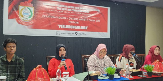 Hal itu disampaikannya saat Sosialisasi Peraturan Daerah (Perda) Nomor 5 Tahun 2018 tentang Perlindungan Anak. Bertempat di Hotel Asyira Jalan Maipa, Minggu (17/8/2025).